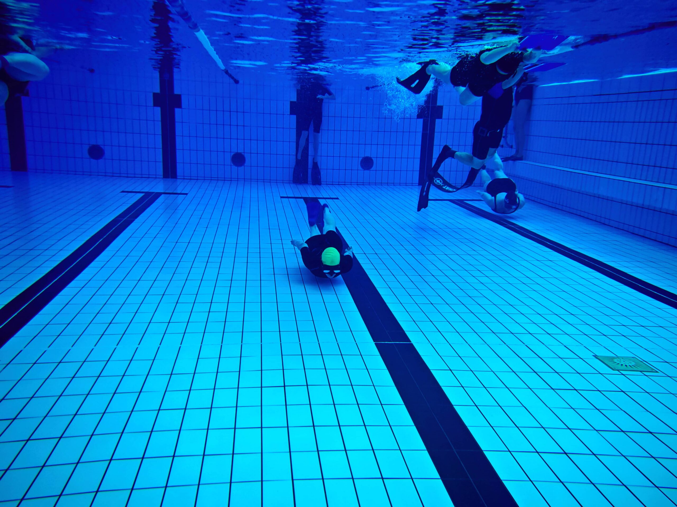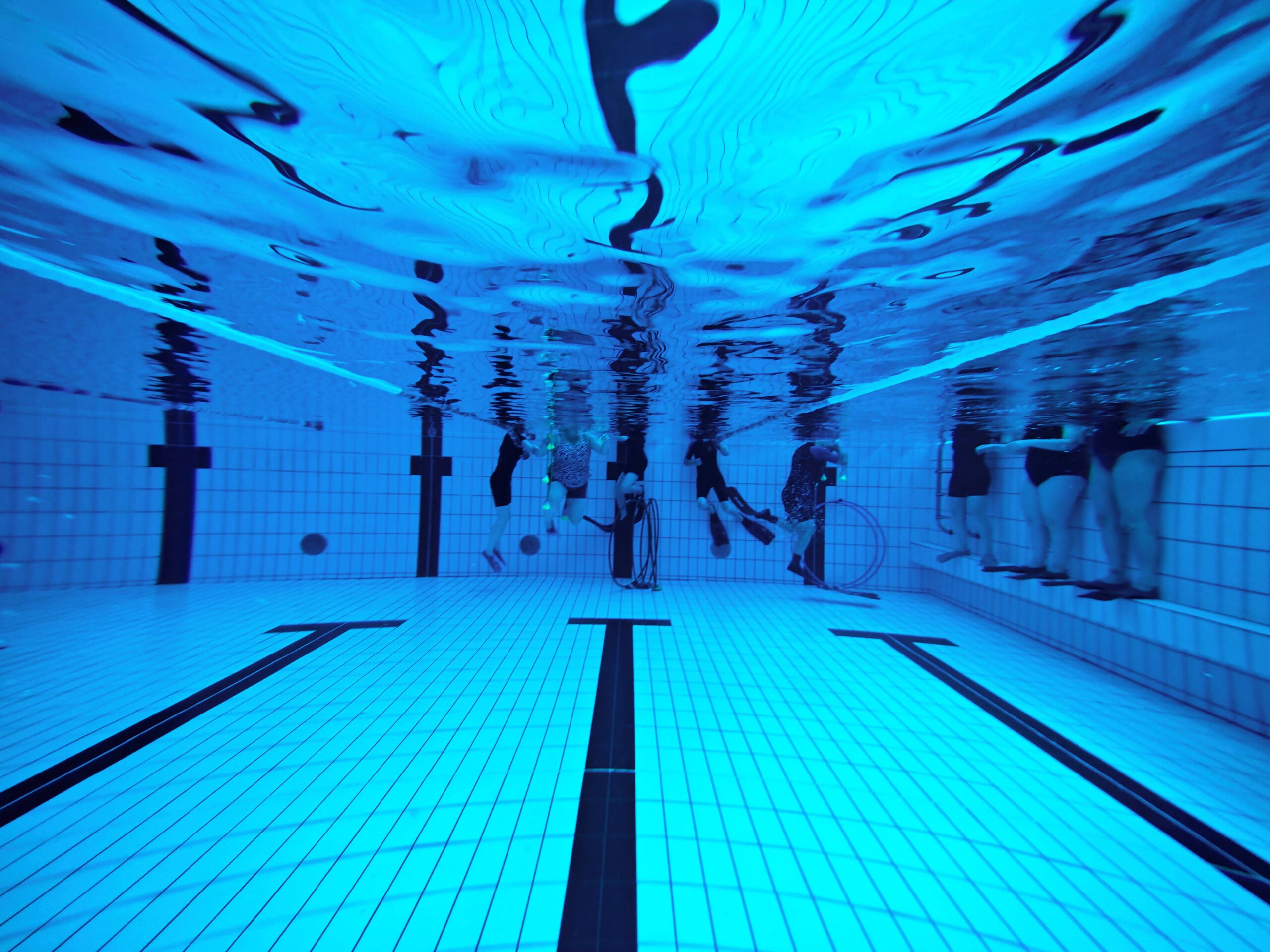 Porté par la présence et le soutien du groupe, le contact dans et avec l’eau favorise un sentiment de sécurité. La mise en mouvement, qu’il s’agisse de la nage, de jeux variés en milieu aquatique et de l’expérience de l’apnée, constitue le fil conducteur de l’atelier. L’apnée, paradoxalement, ouvre à l’accés possible d’un souffle nouveau ou retrouvé. Celui-ci réanime le mouvement vital, et autorise à se déployer de nouveau vers autrui, vers l’extérieur, vers la vie.