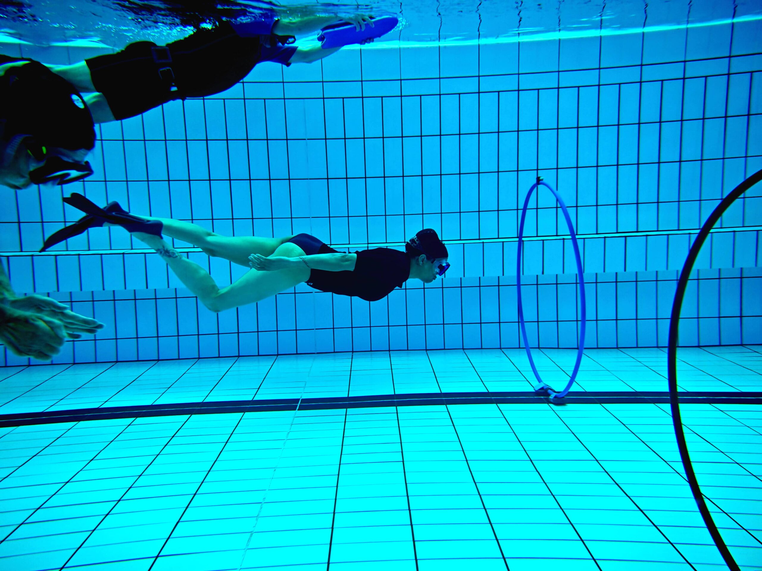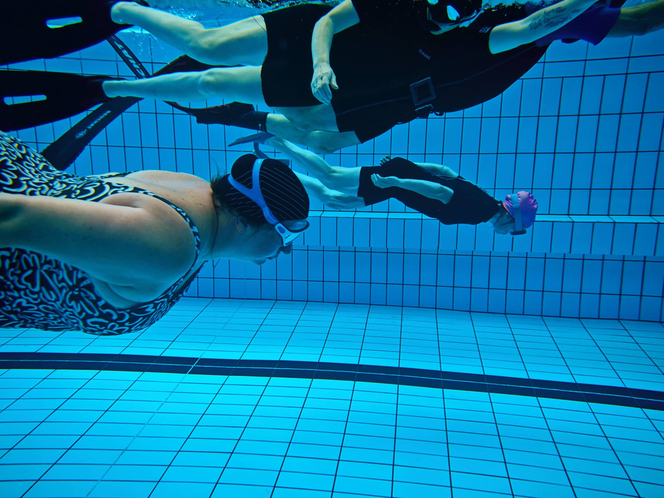 Alors que l’atelier thérapeutique en escrime choisit le sabre comme arme, l’eau, elle, donne un vécu en douceur dans trois dimensions assurant un travail complet de la sensation et de la perception de verticalité, l’apesanteur n’existant quasiment plus.